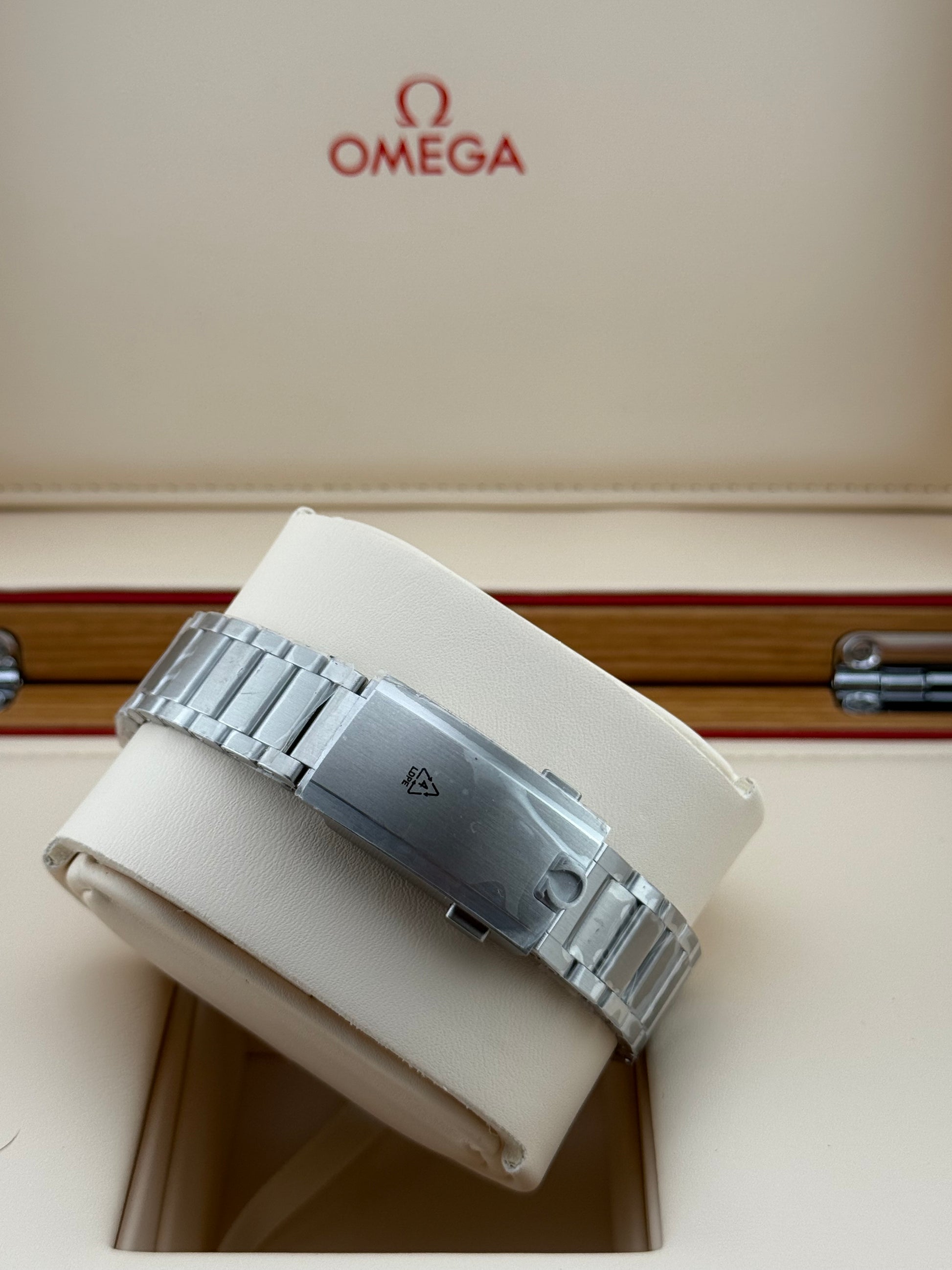 Powering the watch is Omega’s in-house Calibre 9900 Co-Axial Master Chronometer, offering exceptional accuracy, magnetic resistance up to 15,000 gauss, and a 60-hour power reserve. The movement is visible through the sapphire exhibition caseback and certified to the highest Swiss standards.