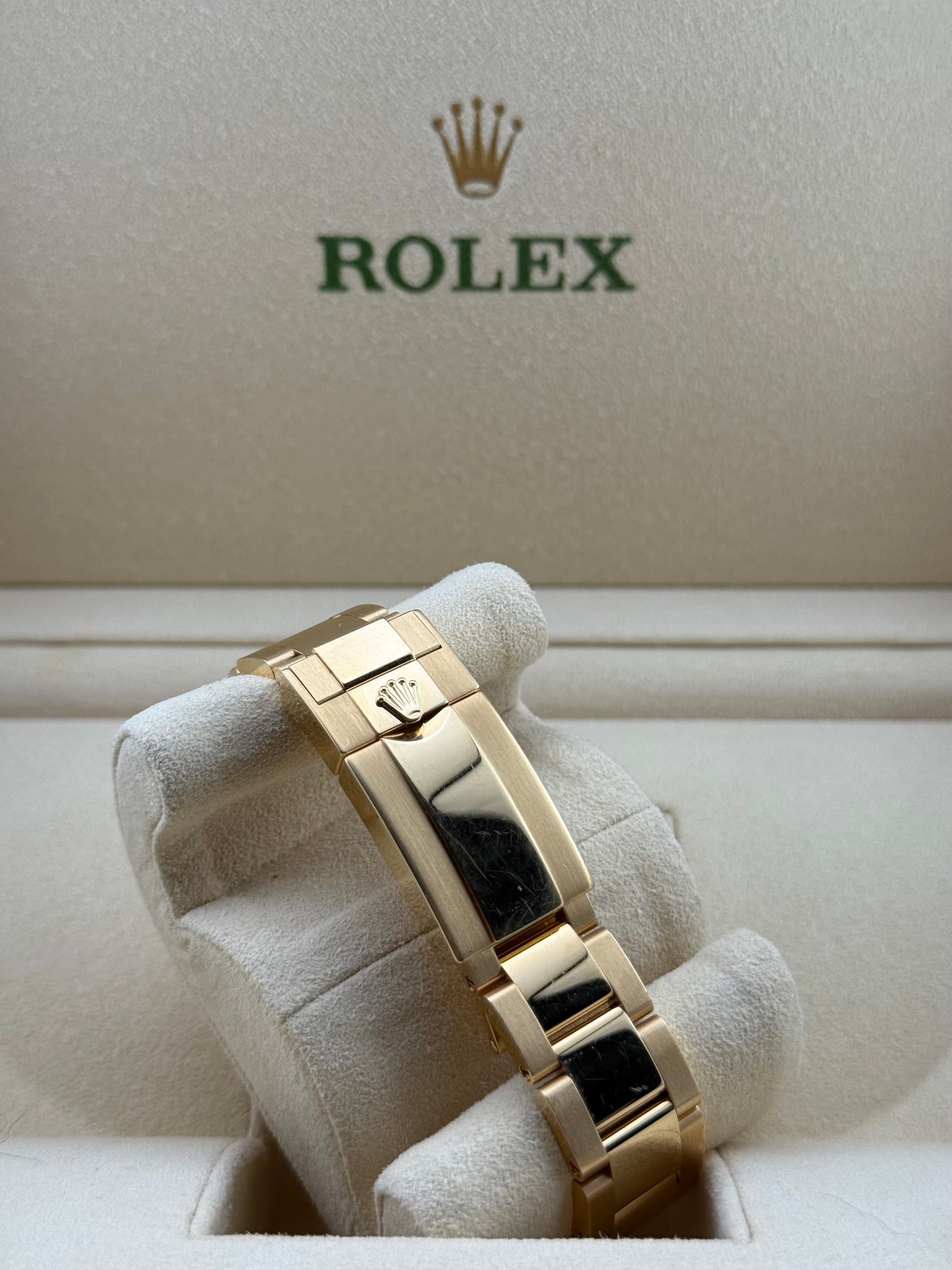 Completing the design is the robust and elegant Oyster bracelet in matching 18k yellow gold, fitted with the Oysterlock safety clasp and Easylink comfort extension.