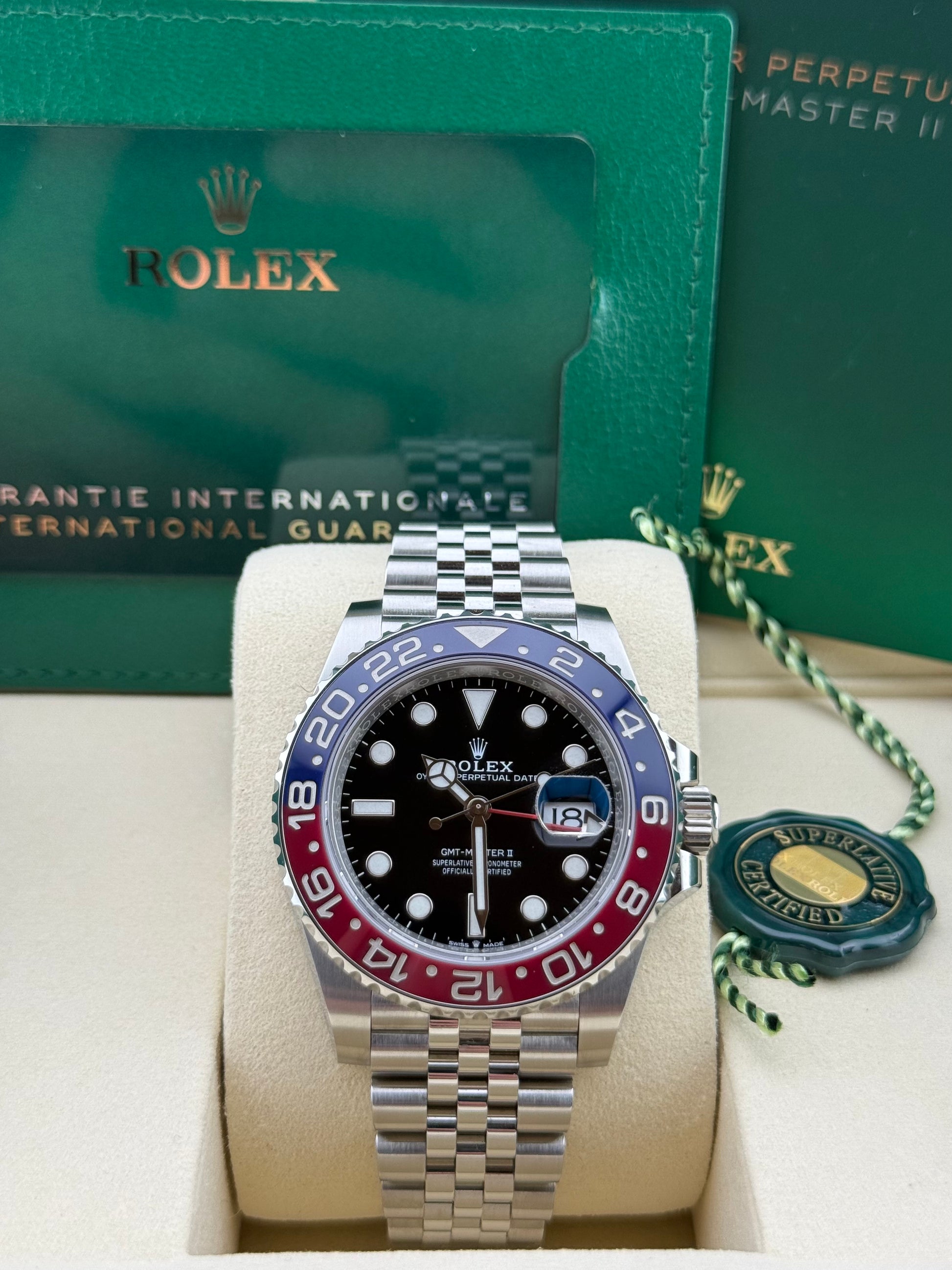 Powered by Rolex’s in-house Caliber 3285 movement, it boasts a 70-hour power reserve and remarkable reliability. With its water resistance of 100 meters (330 feet), the GMT-Master II 126710BLRO seamlessly blends luxury, functionality, and style, making it one of the most coveted Rolex models today.