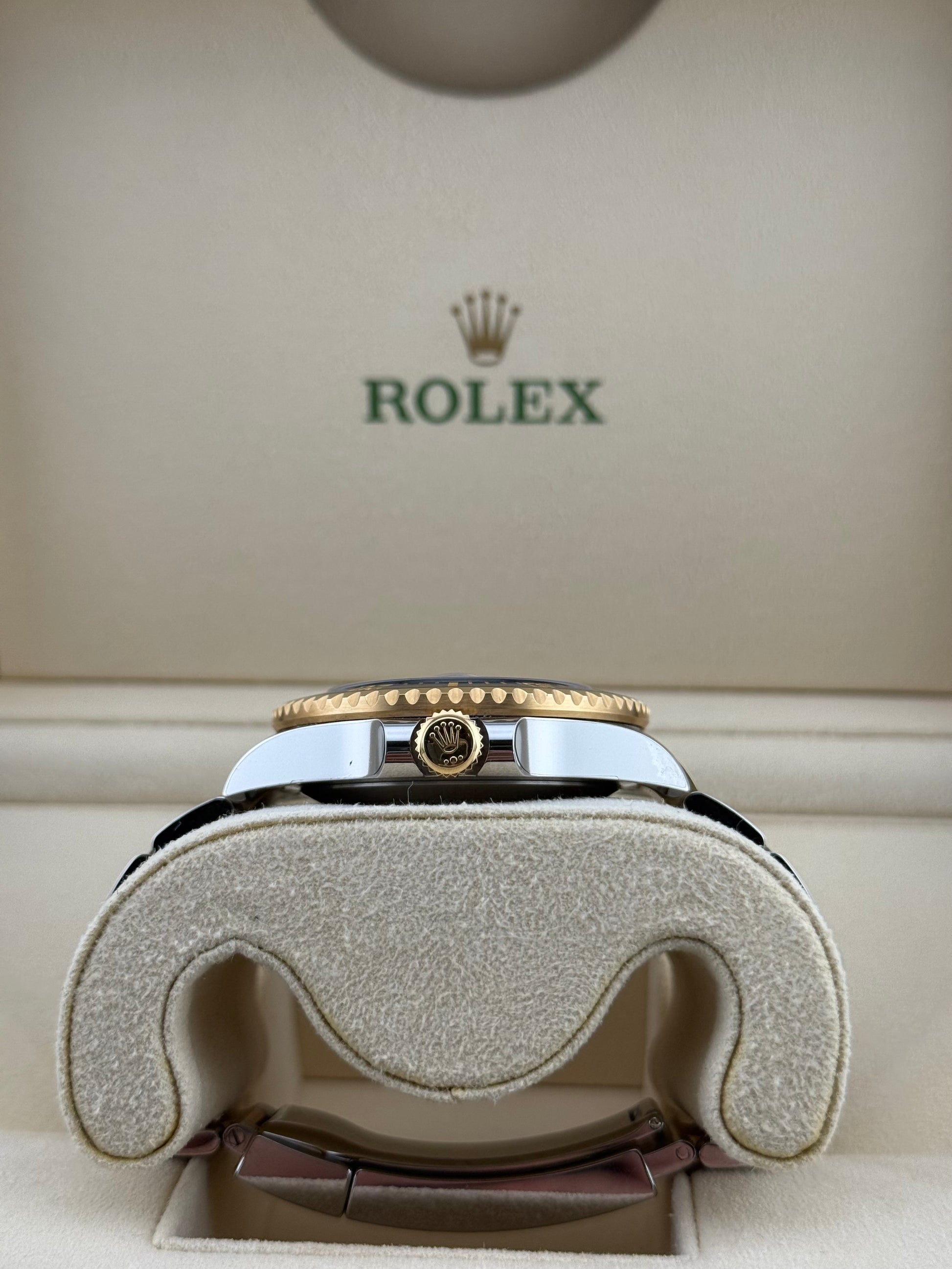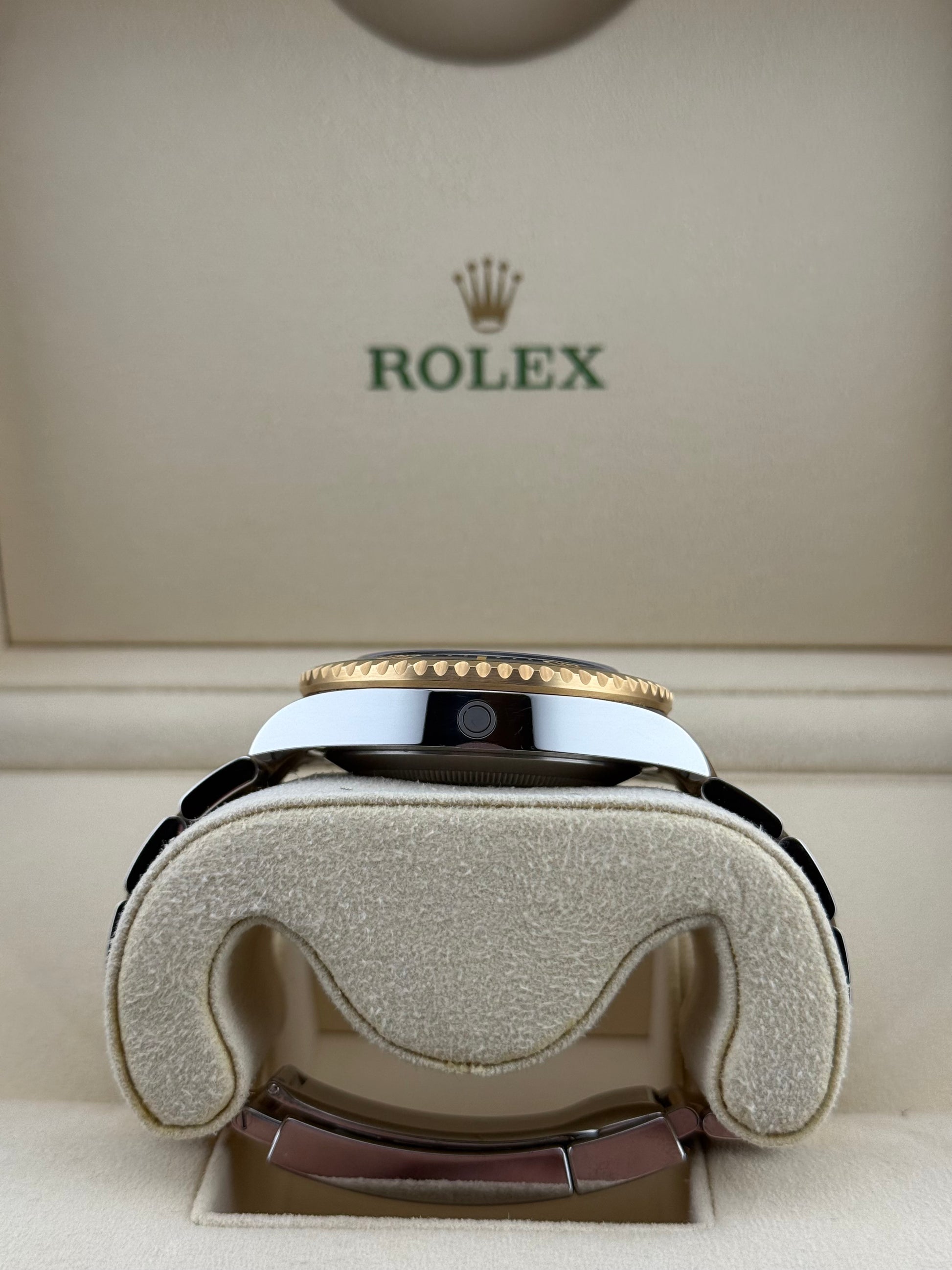 The Rolex Sea-Dweller 126603 is a professional-grade dive watch that merges rugged performance with refined luxury. Featuring a 43mm Oyster case crafted from Oystersteel and 18k yellow gold, it’s built to withstand depths of up to 1,220 meters (4,000 feet). The black dial, accented with the signature “Sea-Dweller” name in gold, offers exceptional legibility with Chromalight luminescence, while the unidirectional Cerachrom bezel ensures precise dive timing. Powered by the Calibre 3235 with a 70-hour power reserve, this Superlative Chronometer is equipped with a helium escape valve for deep-sea expeditions. The robust Oyster bracelet with Glidelock and Fliplock extensions ensures a secure, comfortable fit over wetsuits or for daily wear.